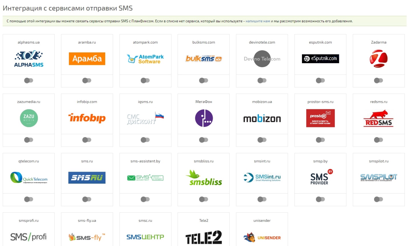 Інтеграція з SMS-сервісами доступна тільки на платних пакетах використання ПланФікса.