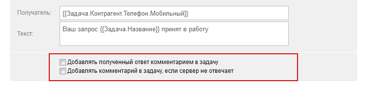 Для налагодження процесу використовуються два додаткові параметри, що дають змогу поміщати в завдання коментар із текстом відповіді або повідомленням про недоступність сервера. Нормальний їхній стан - вимкнений. Ви можете тимчасово ввімкнути їх для діагностики помилок надсилання SMS: